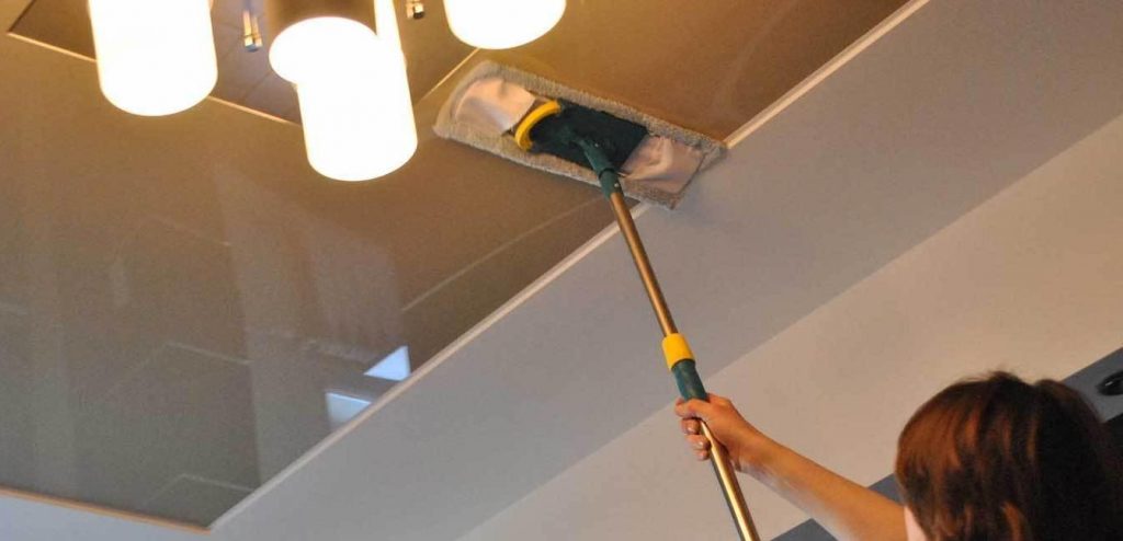 Даже если срочная уборка не требуется, мыть натяжные потолки всё равно необходимо регулярно, хотя бы один-два раза в год. Это важно, чтобы избавиться от накопившейся пыли, которая плохо влияет на здоровье легких.
